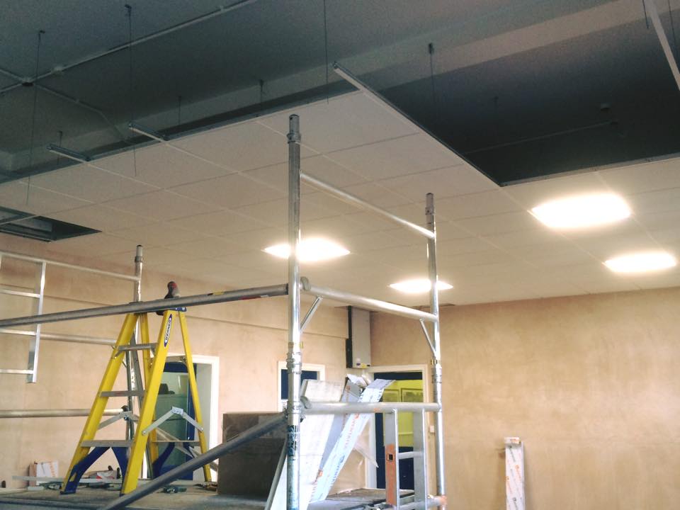 Over 200 m2 of new suspended ceilings to various rooms and corridors within The Kings School, Ottery st Mary. AMF 24mm grid ceilings with AMF Fine Stratos ceiling tiles.